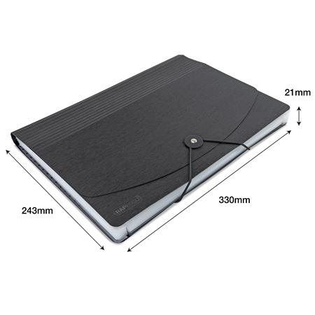 Harmonikamappa, A4, PP, 13 rekeszes, RAPESCO "Eco GRS Recycled", matt fekete